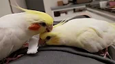 Totoro幫咕嘰抓抓頭,咕嘰在被拔毛中也享受理毛與親親的樂趣 !Totoro preened Gugi玄鳳理毛💗